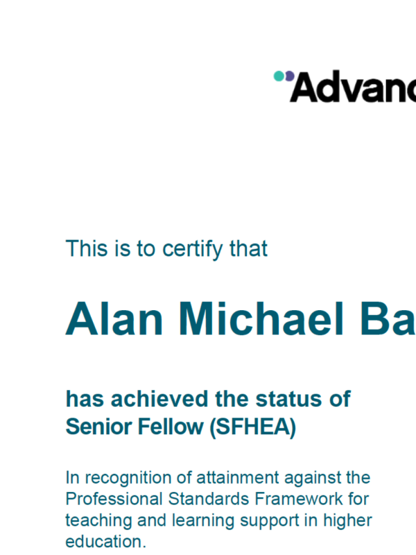 I was recently elected to Senior Fellowship of the Higher Education Academy/Advance HE (SFHEA) – I was previously a Fellow (FHEA) since 2019. I achieved[…]
