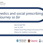 Thanks to the Alliance for Healthier Communities and the Older Adult Centres Association of Ontario for the invite to speak to the Ontario Social Prescribing CoP about the journey of paramedicine in social prescribing. https://www.youtube.com/watch?v=iQmsTKP93sI You can download the slides here: 250619 CP Social PrescribingDownload